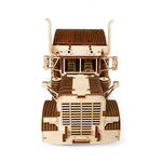 Robust and powerful, the Ugears long-hauler has a R6 engine driven by a rubber band motor. With one winding, the truck can go for about 5 meters. The transmission system implemented in the model has three modes: forward, back and idle. The front sprung wheels turn to set the direction.
