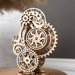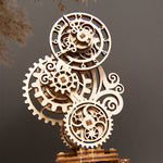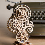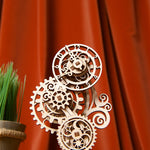 This model is a miniature imitation of a clock with a delicate carved body and a clever mechanism that sets its gears in motion and gets the hands of the clock moving. Beautiful lace-like ornaments of the Steampunk Clock include floral designs, the Sun, stars, and the Moon.